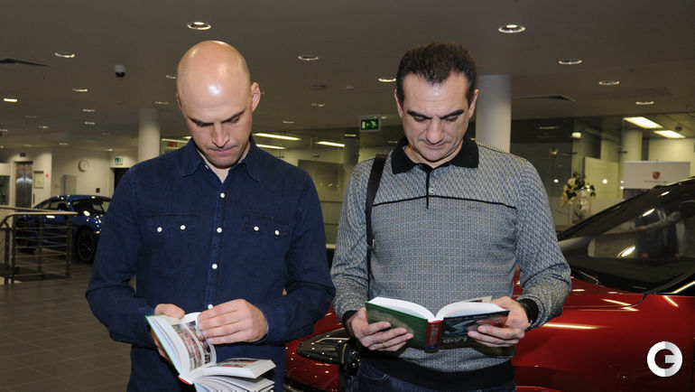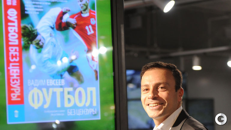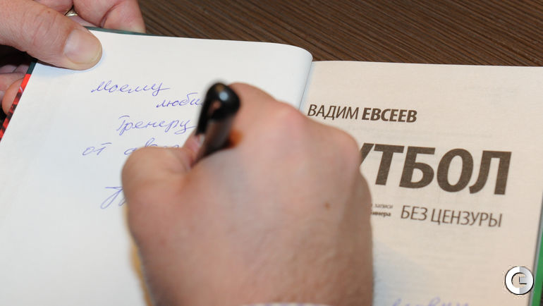 В московском "Порше-кафе" прошла презентация автобиографии Вадима Евсеева "Футбол без цензуры", литературную запись которой сделал обозреватель "СЭ" Игорь РАБИНЕР. В ближайшие дни поступит в продажу яркая книга поступит в продажу. Фото Александр ФЕДОРОВ, "СЭ"