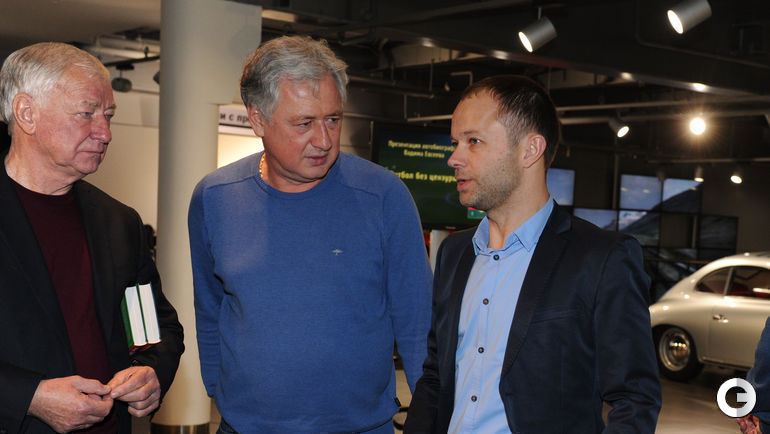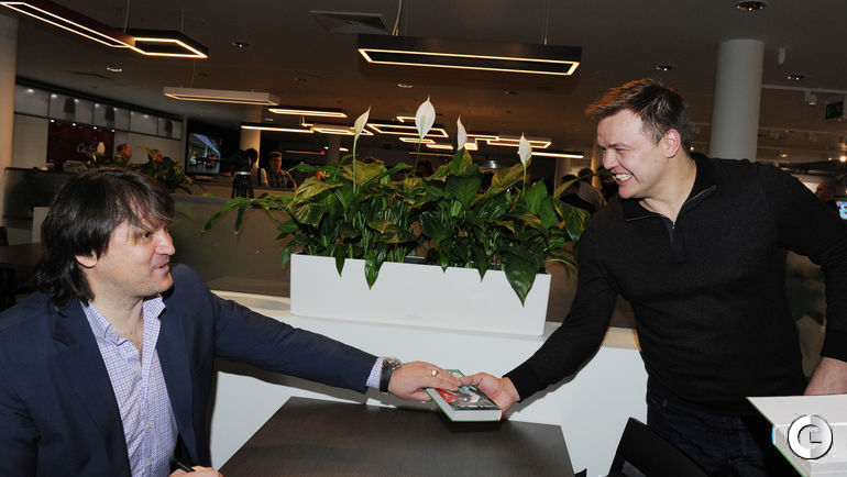 Эх, спортсмены, что же вы делаете с собой после окончания карьеры... Пименов рассвинел так, что не сразу узнал. Евсеев тоже вот второй подбородок отрастил и в целом округлился. Один только Пашинин молодцом держится. Саму книгу, наверное, прочитал бы, да только сомневаюсь, что она будет продаваться далеко за пределами Москвы. Надеюсь, появится где-нибудь онлайн.