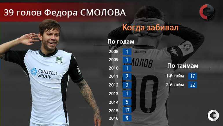 Форвард "Краснодара" Федор Смолов в матче 25-го тура премьер-лиги забил гол-красавец в ворота "Уфы". "СЭ" вспоминает все голы нападающего сборной России.