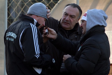Тем временем врач железнодорожников Александр Ярдошвили подгонял футболистов на пути в раздевалку: