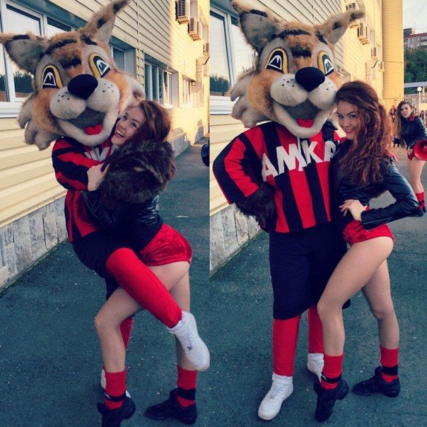 Группа поддержки пермского "Амкара" и талисман команды - рыжая рысь: