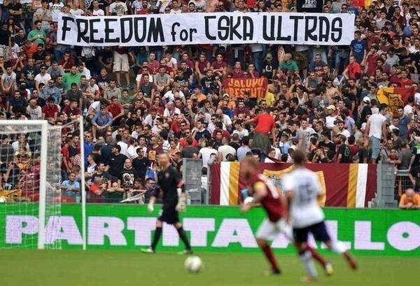 … в их поддержку выступили… фанаты той же "Ромы". Во время поединка 3-го тура чемпионата Италии с "Кальяри" (2:0) болельщики "волков" вывесили баннер следующего содержания: "Свободу ультрас ЦСКА". Таким образом, активные поклонники итальянского клуба потребовали освободить фанатов российского клуба, оказавшихся после матча за решеткой: