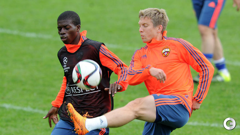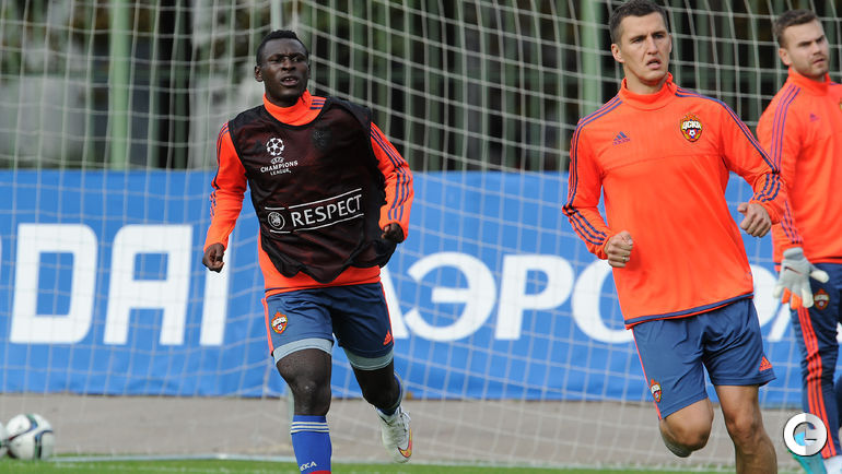 Перед вылетом в Иркутск на матч 1/16 финала Кубка России против "Байкала" ЦСКА провел тренировку на московском стадионе "Октябрь". В занятии приняли участие двое футболистов, прибывших на просмотр из Африки, это 25-летний нигерийский нападающий Ибраим Шуаибу и 19-летний крайний защитник из Кот-д'Ивуара Шериф Жимо. Фото Алексей ИВАНОВ, "СЭ"