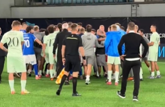 После финального свистка случилась массовая драка на поле с участием игроков и представителей команд.