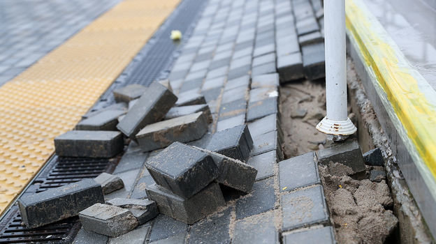 На Октябрьском — просадка грунта, о которой много говорили еще до старта ЧМ-2018. Плитка на площади у арены во многих местах проваривалась или, наоборот, поднималась. Образовывались трещины.