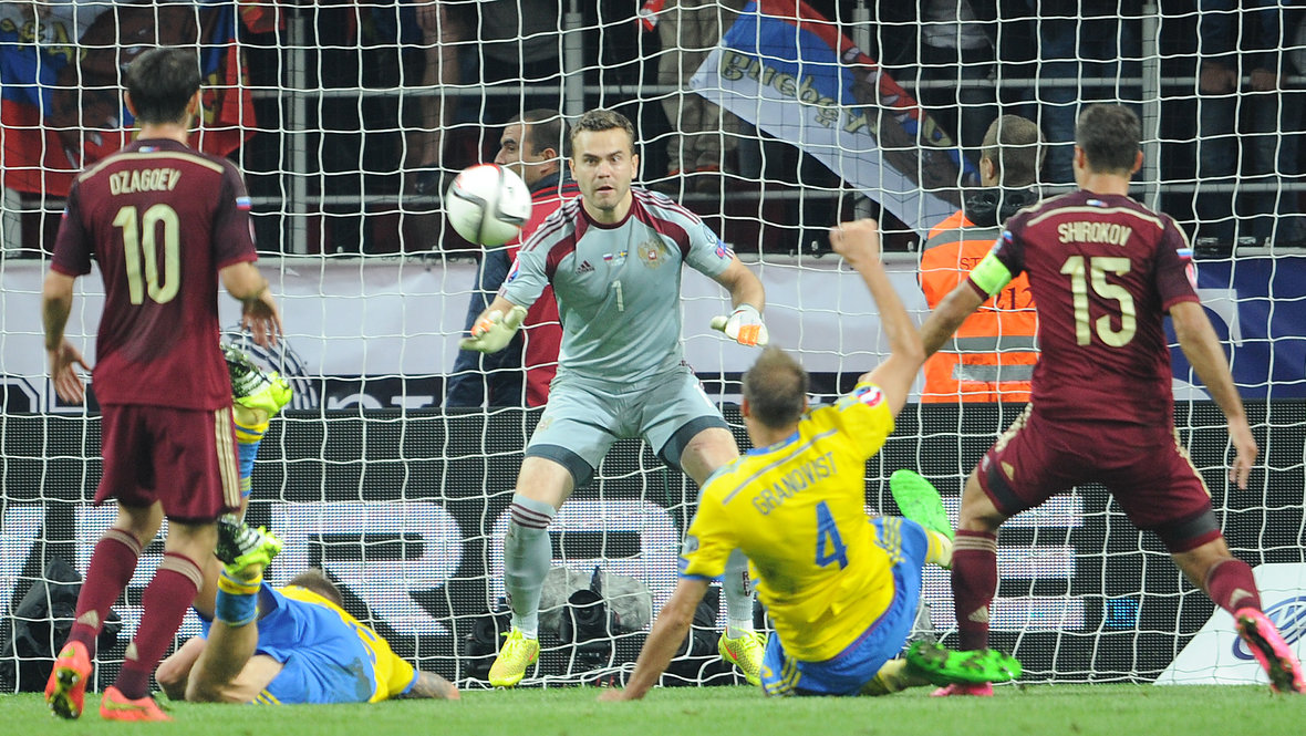 Парадоксально, но без Ибры шведы в атаке заиграли гораздо острее. Форсберг мощно выстрелил из-под Смольникова — Акинфеев вытащил мяч из ближнего угла.