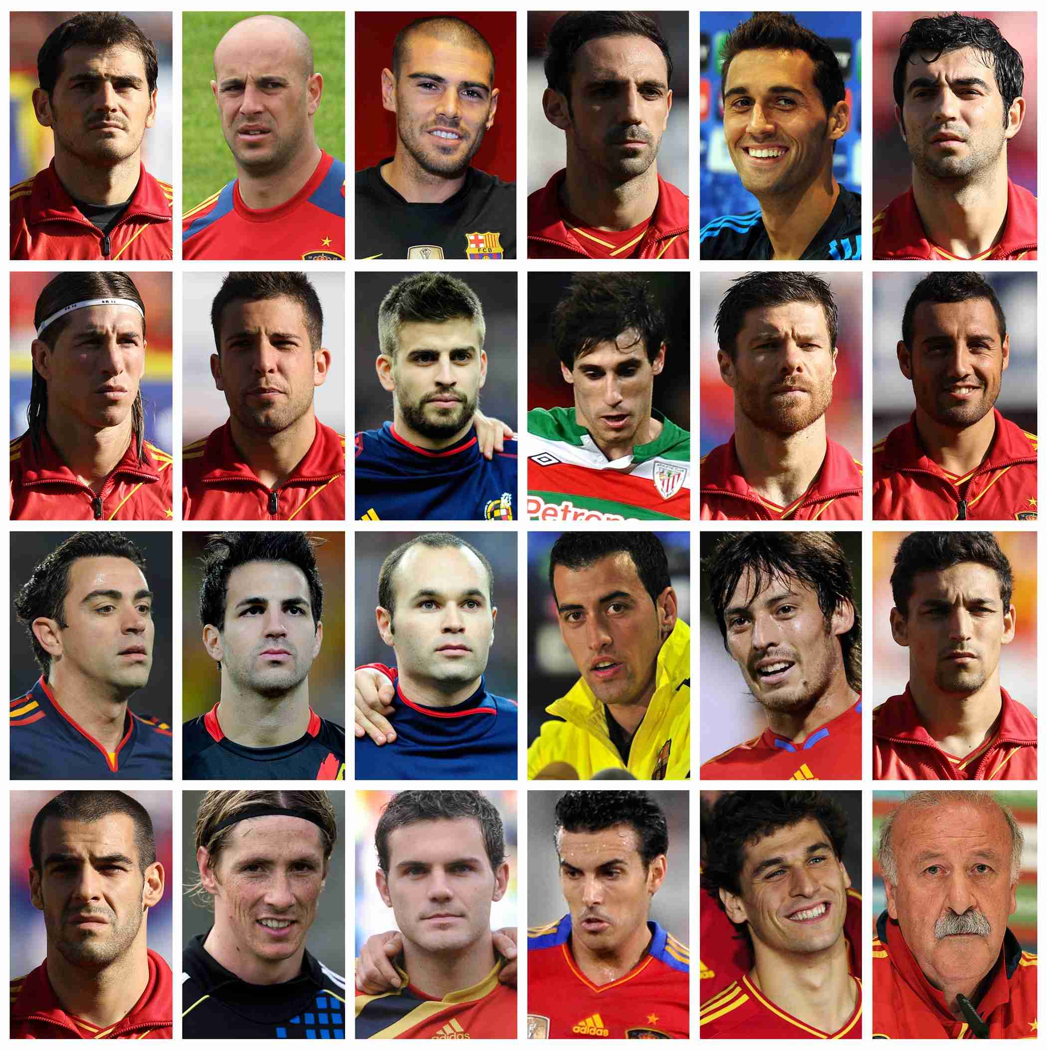 Футболисты из столицы Каталонии – Хави, Иньеста, Фабрегас, Педро и Вилья – представляют основной атакующий потенциал испанской сборной. Нападение "Красной фурии" начинается в опорной зоне, где основными футболистами являются Хаби Алонсо и Серхио Бускетс: первый обладает длинным пасом, второй – сосредоточен на разрушении. Пять лет назад на чемпионате Европы-2008 сборная играла с одним опорником – с этой ролью прекрасно справлялся этнический бразилец Маркус Сенна. Однако футболист "Вильярреала" был в весьма почтенном футбольном возрасте и в дальнейшем вызываться в сборную перестал. Фундаментальную роль в центре поля выполняют каталонцы Хави и Иньеста – через них проходит более 70 процентов всех передач, многие из которых являются обостряющими или голевыми. Андреас часто смещается на фланг, а его место могут занять Сеск Фабрегас или Давид Сильва: хавбеки "Барселоны" и "Манчестер Сити" не менее эффективно могут выполнять атакующие функции. При всех имеющихся ресурсах позиция центрального нападающего – ахиллесова пята испанской сборной. Давид Вилья и Педро создают атаке необходимую ширину, зачастую играя на позиции вингеров (эта "опция" применяется в тех случах, когда испанцы, играя через центр, не могут пройти насыщенную оборону противника), а у чужих ворот на грани офсайда пробуют свои силы Фернандо Торрес и Роберто Сольдадо. Но назвать их стопроцентными игроками стартового состава все-таки нельзя, и частенько команда выходит на игру вообще без классического девятого номера.
