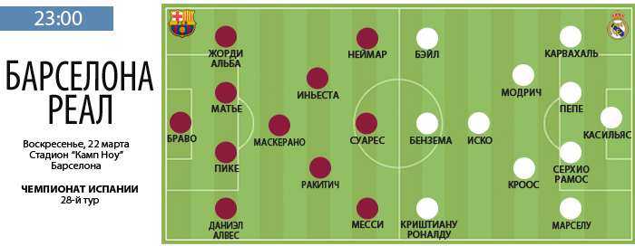 Так что "Барселоне" не помешала бы более крупная победа. Если же "Барса" выиграет с тем же счетом 3:1, то следующим критерием при равенстве очков станет общая разница забитых и пропущенных мячей, а она у каталонцев существенно лучше – "+62" против "+53" у "Реала".