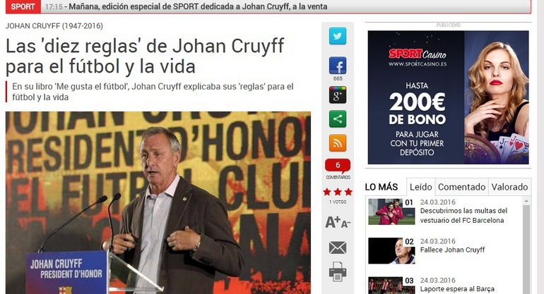 SPORT.ES: 10 ПРАВИЛ ЙОХАНА КРОЙФА