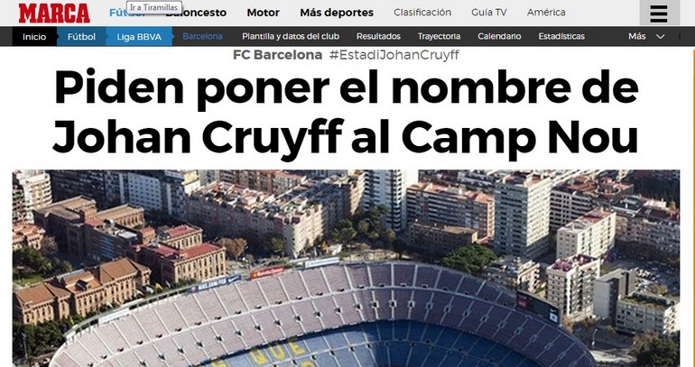 MARCA: "КАМП НОУ" ДАДУТ ИМЯ КРОЙФА?