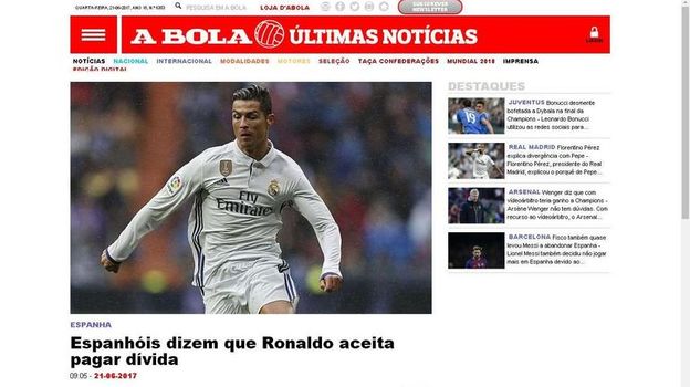 Португальская газета A Bola со ссылкой на испанские источники утверждает, что Криштиану Роналду решил заплатить в испанскую казну долг в 14,8 миллиона евро. "Форвард пойдет на мировую с судом, который состоится 31 июля", – пишет издание.