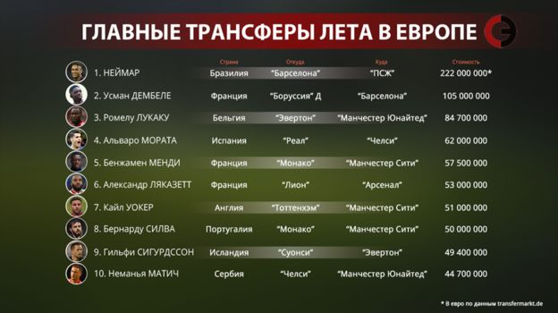 Трансфер Неймара стал не просто самым дорогим в футболе, он запустил эффект домино – это только в армии равнение происходит на середину, в футбольном же мире с этого момента равняться все будут лишь на верхнюю планку, на эту высоту в 222 миллиона.