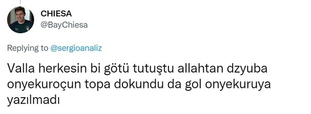 «Слава богу, что Дзюба коснулся мяча», — написал BayChiesa. Видимо, болельщик боялся, что защитник «Фенербахче» мог вынести мяч с линии ворот.