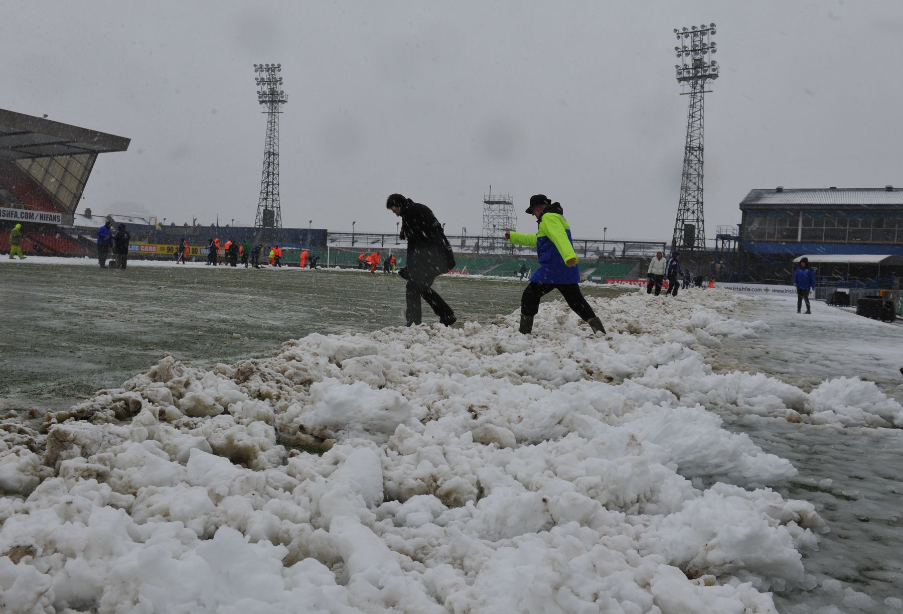 22 марта в Белфасте выдалось суровым. Еще с вечера повалил снег. Завыл противный северный ветер, и поле стадиона "Уинздор Парк" оказалось непригодным для проведения футбольного матча самого высокого уровня. Современная российская футбольная история таких примеров не знала. В геометрической прогрессии множились возможные варианты развития событий.