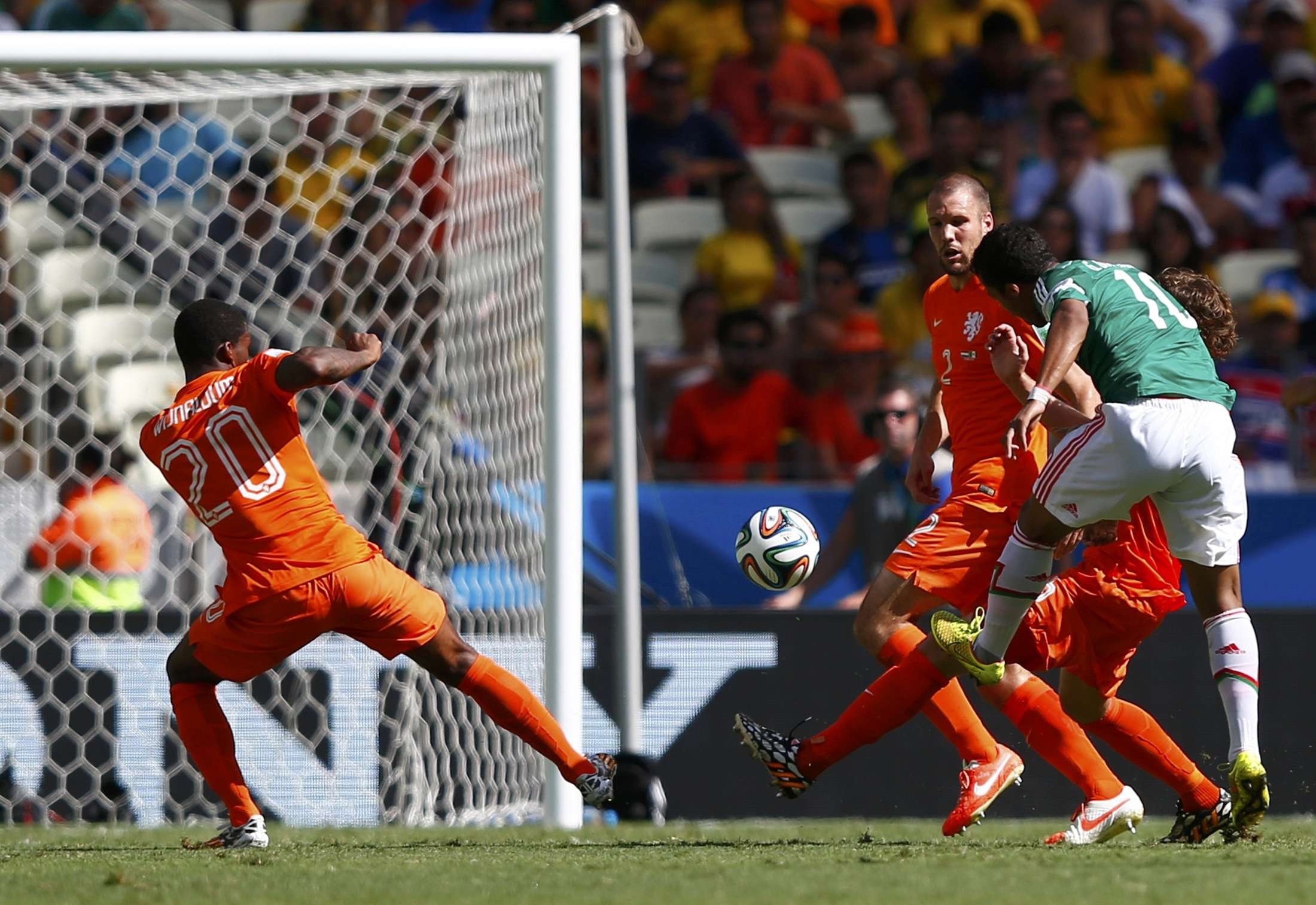 Мексиканцы со старта матча смотрелись четче, острее. Команда Эрреры с одной стороны не предоставила пространство Роббену и компании, с другой – искала свободные зоны в критикуемой обороне голландцев. "Оранжевые" к тому же были вынуждены перестроиться на ходу после ранней замены травмировавшего пах де Йонга – Блинд выдвинулся в опорную зону, а в защиту вышел Мартинс Инди. План латиноамериканцев работал, в начале второго тайма Дос Сантос при пассивности Блинда сместился справа к центру и перевел перевес по числу ударов в счет на табло попаданием из-за штрафной в угол ворот Силлессена.