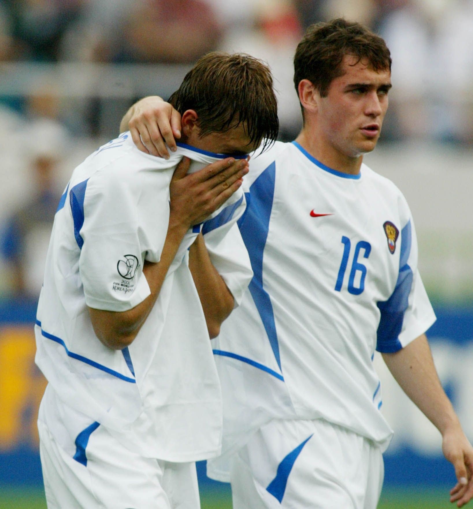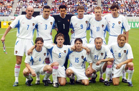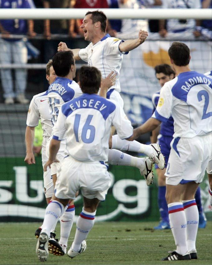 А в полностью красной форме уже с белым воротником российские футболисты были биты Испанией в полуфинале (0:3):