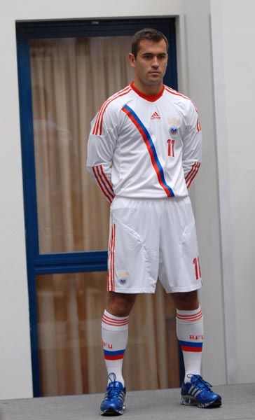 И сильно напоминает модель четырехлетней давности, когда сборная только перешла на модели от Adidas. Она оказалась революционной. Впервые наши игроки облачились в форму, цвет и элементы которой, по задумке дизайнеров, напоминают один из главных символов страны – Кремль. На груди футболистов присутствовал едва различимый двуглавый орел: