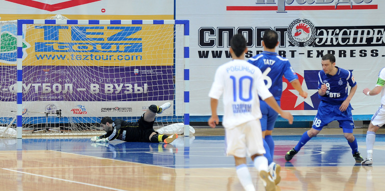 Мини-футбол. Чемпионат России. Суперлига. 1/2 финала. Второй матч. "Динамо" (Москва) - "Газпром -Югра" (Югорск) - 5:4 ОТ (3:1, 0:2, 2:1). Счет в серии: 2-0. Фото - Никита УСПЕНСКИЙ, "СЭ"