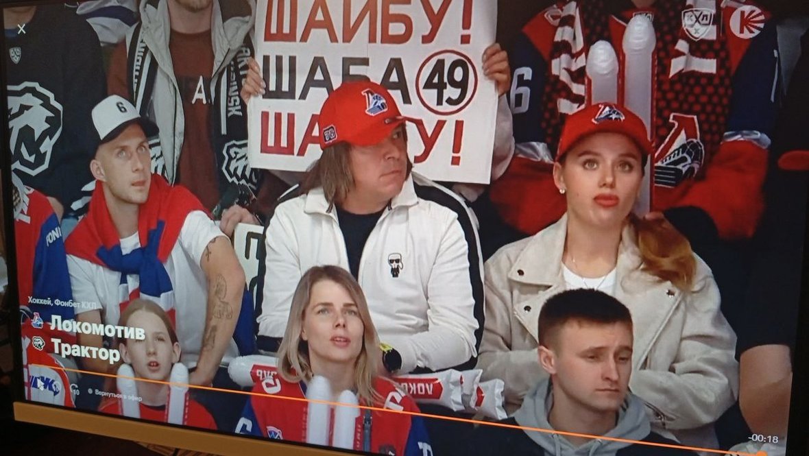 Футболист «Локомотива» Дмитрий Баринов пришел поддержать хоккейных одноклубников в пятом матче финальной серии Кубка Гагарина против «Трактора».