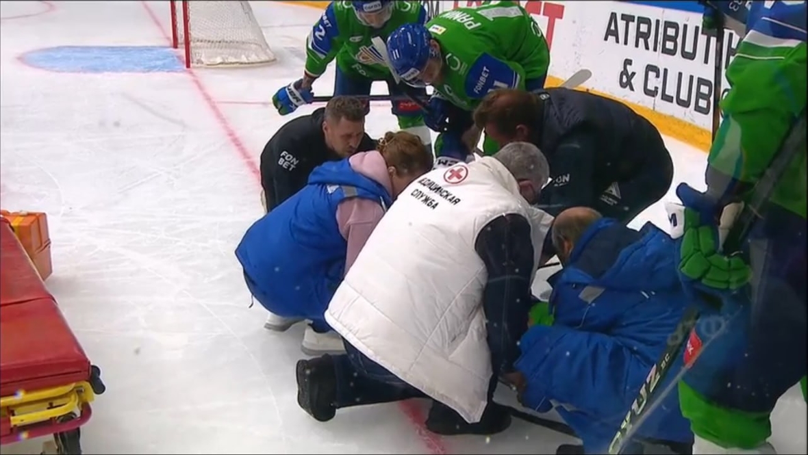 Нападающий «Салавата Юлаева» Петр Хохряков получил тяжелую травму в третьем матче серии против «Локомотива» в полуфинале Кубка Гагаринаю