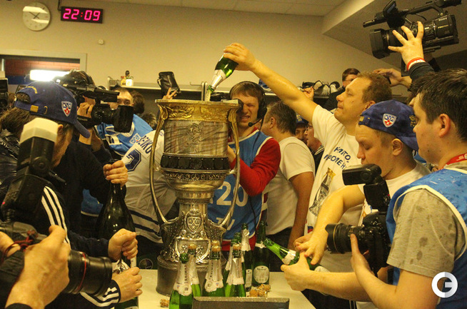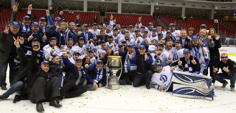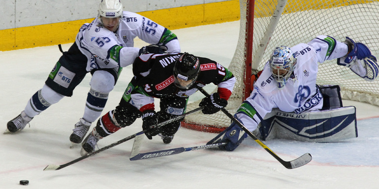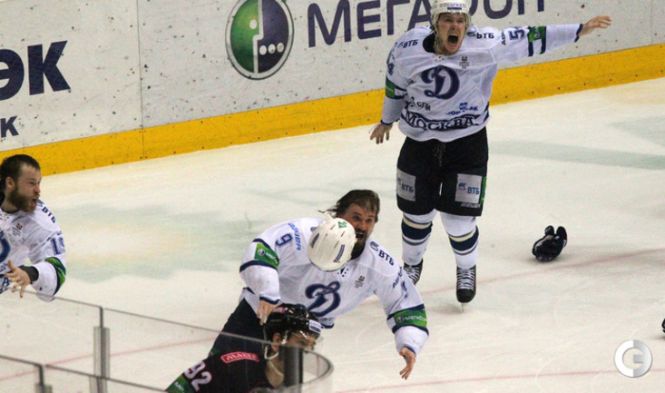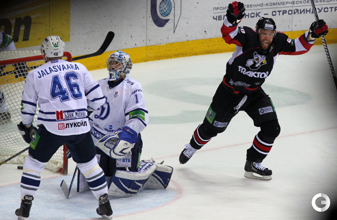 КХЛ. Плей-офф. Финал. Шестой матч. "Трактор" (Челябинск) – "Динамо" (Москва) – 2:3 ОТ (1:0, 0:2, 1:0, 0:1). Московское "Динамо" вырвало победу у "Трактора" в овертайме гостевого шестого матча финала плей-офф КХЛ – 3:2, и второй год подряд стало обладателем Кубка Гагарина. Фото - Игорь Золотарев