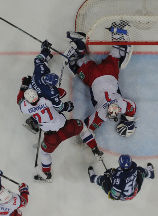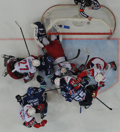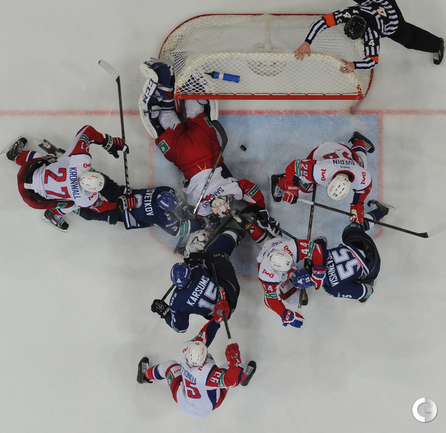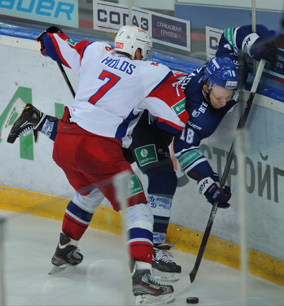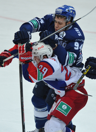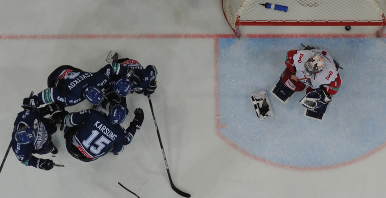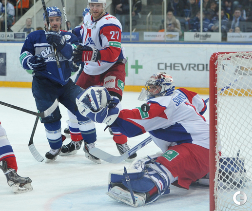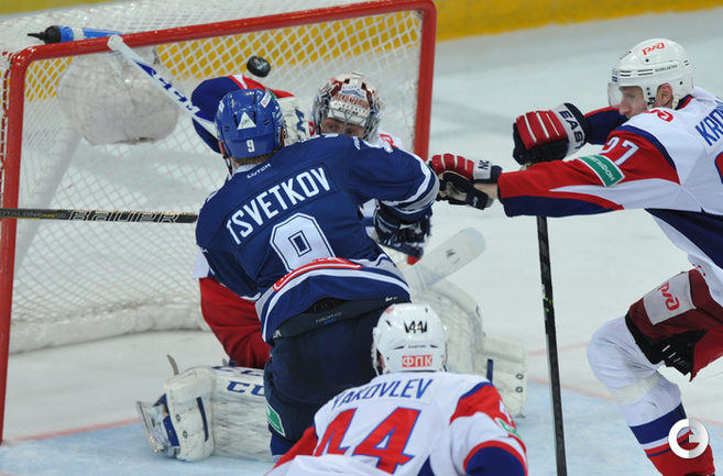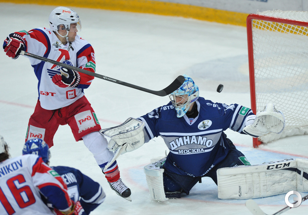 КХЛ. Кубок Гагарина. 1/8 финала. Второй матч."Динамо" (Москва) - "Локомотив" (Ярославль) - 1:2. Голы: Плотников - 1 (бол., Кронвалль, Аверин), 16:39 - 0:1. Карсумс - 1 (Вишневский), 48:25 - 1:1. Плэтт - 1 (Горохов), 51:44 - 1:2. Счет в серии: 1-1 (3:1). Фото - Александр ФЕДОРОВ, "СЭ"