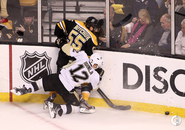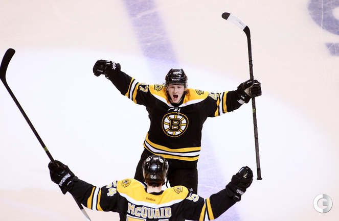 Хоккей. НХЛ. Кубок Стэнли. 1/2 финала. Четвертый матч. "Бостон" – "Питтсбург" – 1:0 (0:0, 0:0, 1:0). Гол: Маккуайд – 2 (Маршан, Бержерон), 45:01."Бостон" на своей площадке в четвертом матче полуфинальной серии плей-офф НХЛ победил "Питтсбург" и вышел в финал Кубка Стэнли, выиграв серию "всухую". Фото AFP