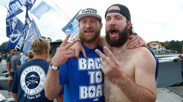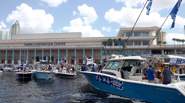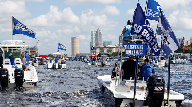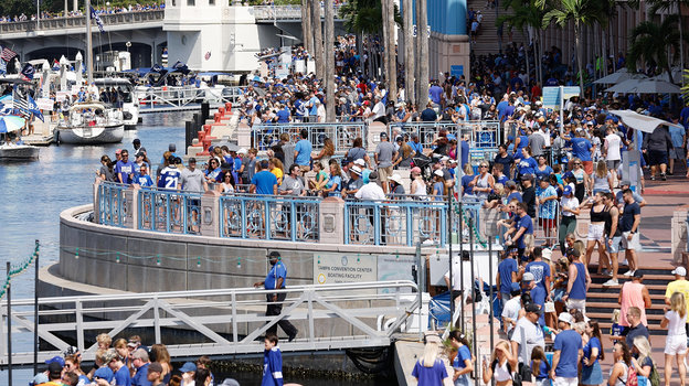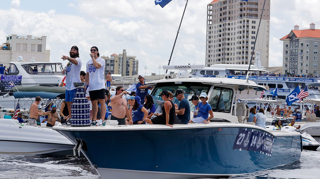 Хоккеисты «Тампы-Бэй» второй год подряд провели чемпионский парад на катерах и яхтах. Команда призвала болельщиков выстроиться вдоль набережной, чтобы посмотреть на процессию с суши. Участие других лодок запрещено.