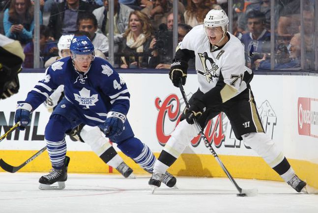 Очень удачным получился игровой день и для "Питтсбурга", который на выезде обыграл "Торонто", а лидеры "Пингвинов" солидно пополнили личную статистику. Евгений Малкин набрал свои очередные очки в новом сезоне и был одним из самых активных хоккеистов гостей. В концовке первого периода Малкин поучаствовал в розыгрыше большинства, завершившегося удачной игрой на пятачке в исполнении Криса Кунитца, затем забил сам, великолепно исполнив бросок в девятку со средней дистанции, а в третьем периоде ассистировал Брэндону Саттеру, который сделал счет 5:1. Не отстал от Малкина и Сидни Кросби, который также набрал 3 (1+2) балла и вместе с форвардом "Айлендерс" Броком Нельсоном возглавил общий список бомбардиров.