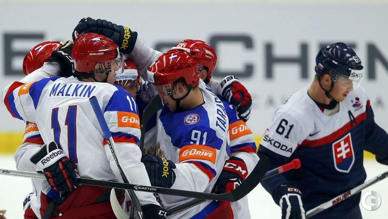 Чемпионат мира. Групповой турнир. Группа B. Словакия – Россия – 2:3 ОТ (1:0, 0:1, 1:1, 0:1). Голы: Копецки – 1 (Паник, Дравецки), 5:58 – 1:0. Мозякин – 3 (бол., Чудинов, Кулемин), 27:07 – 1:1. Тарасенко – 3 (Антипин), 41:10 – 1:2. Габорик – 3 (Гудачек), 49:05 – 2:2. Панарин – 4, 62:06 – 2:3. Фото AFP, REUTERS