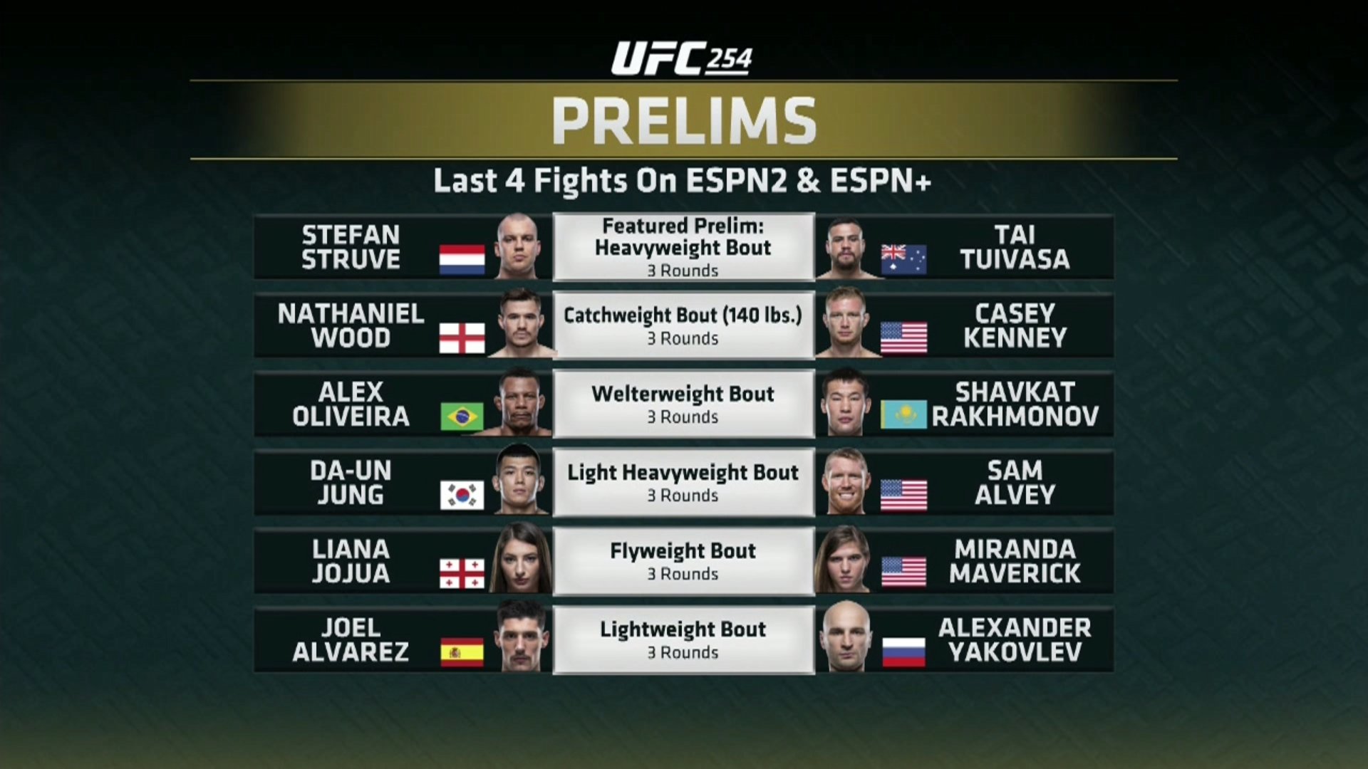 Основной кард UFC 254. 24 октября. Начало - 21.00 (время московское)