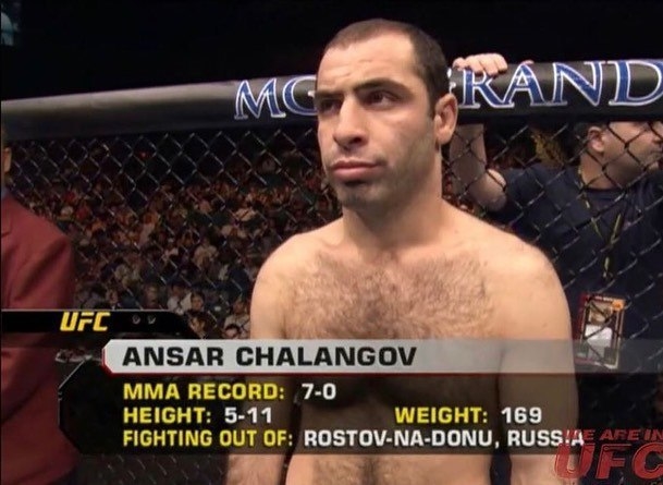 Чалангов был лучшим самбистом Киргизии, но затем перебрался в Россию и стал драться в боях без правил, радуя зрителей очень агрессивной манерой ведения боя в партере. В 2003-м выиграл чемпионат мира по версии легендарного промоушена IAFC, затем стал чемпионом мира по версии М-1, а в 2005-м попал в UFC. Там карьера не заладилась — сначала Ансар проиграл Тиаго Алвесу (ТКО, 1-й раунд, 02:25), а потом — Джошу Кошчеку (удушение сзади, 1-й раунд, 3:29). Тем не менее Чалангов попробовал UFC на вкус — после него российских бойцов там не было шесть лет, пока в 2012-м туда не подписался Хабиб Нурмагомедов.