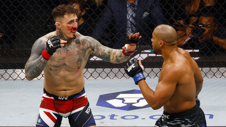 Титульный бой между Томом Аспиналлом и Сирилом Ганом на UFC 321 признан несостоявшимся из-за тычка в глаз со стороны французского бойца.