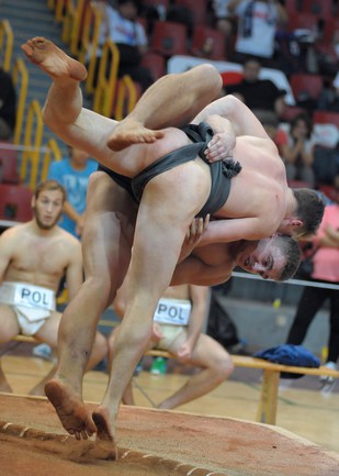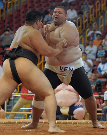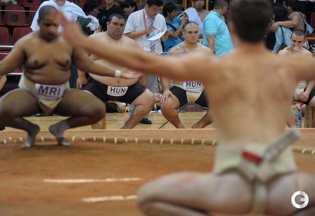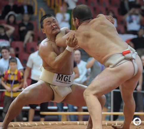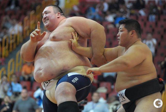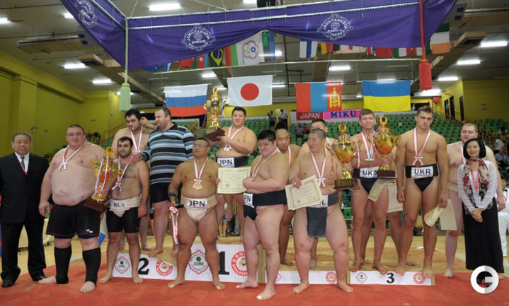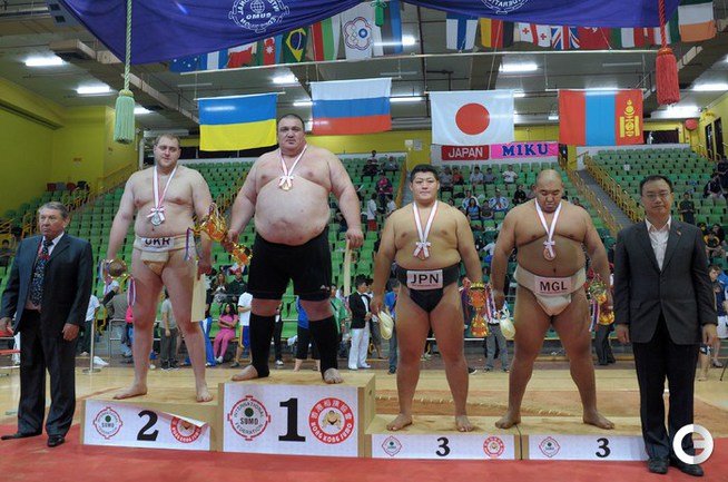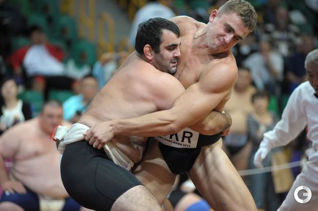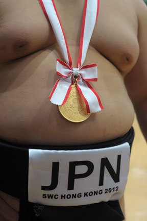 28.10.2012. На чемпионате мира по сумо в Гонконге российская сборная завоевала несколько медалей разного достоинства. Фото AFP