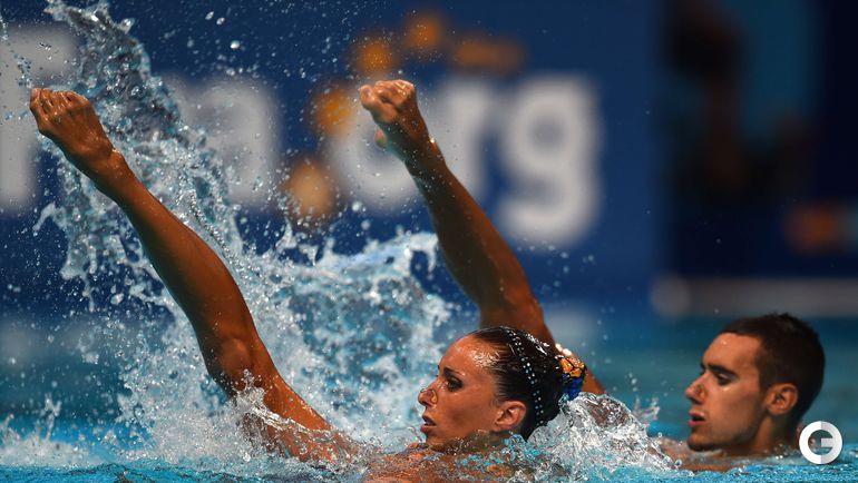 В Казани прошла квалификация микст-дуэтов. Россияне Александр Мальцев и Дарина Валитова с программой "Лебединое озеро" показали второй результат. Фото AFP, REUTERS