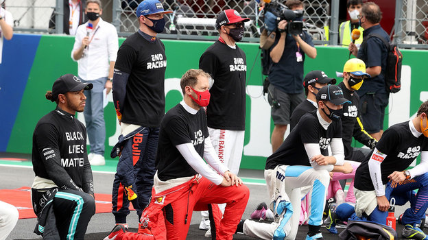 Британец Льюис Хэмилтон («Мерседес») больше всех продвигал эту акцию и был крайне недоволен, что не все его коллеги полностью выполнили ритуал (хотя подготовленные майки надели все).