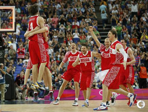 Мужская сборная России по баскетболу впервые в истории завоевала олимпийские награды. В матче за 3-е место на Играх в Лондоне подопечные Дэвида Блатта в упорной борьбе победили Аргентину со счетом 81:77. Фото REUTERS