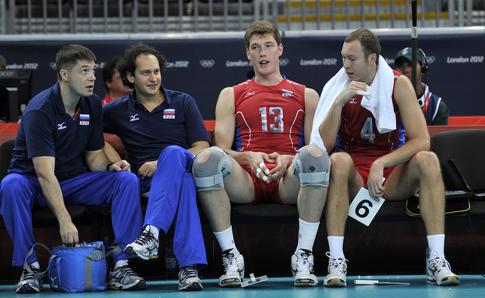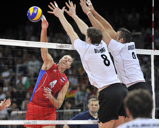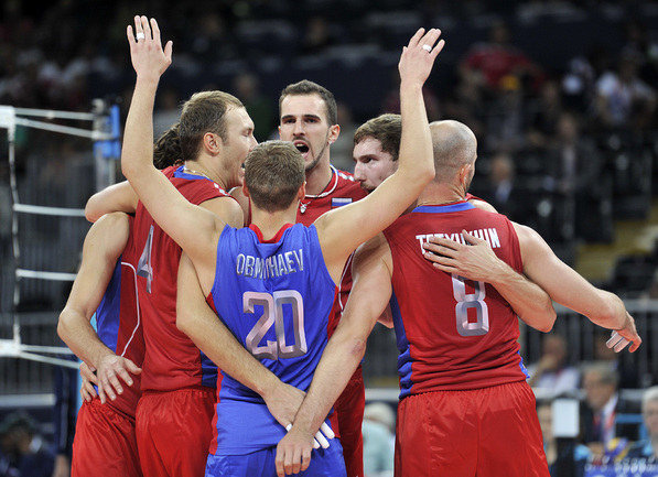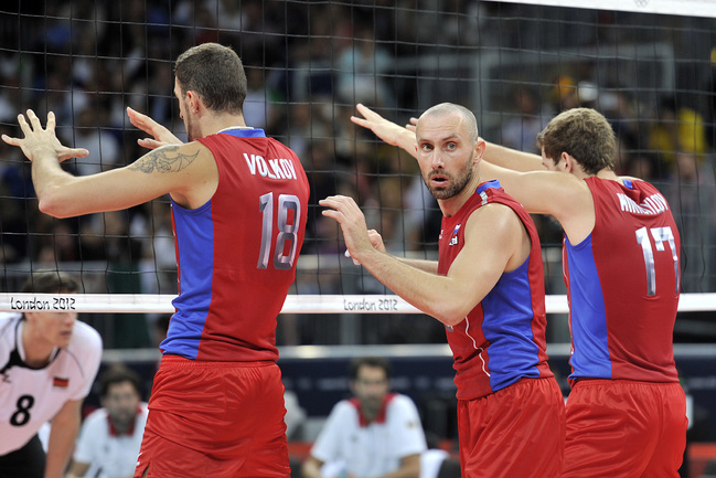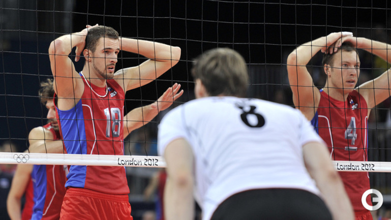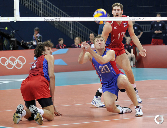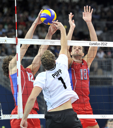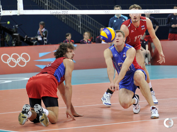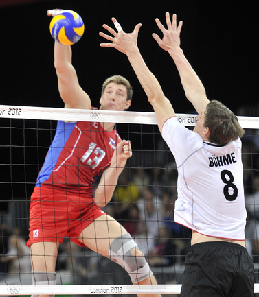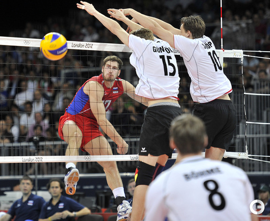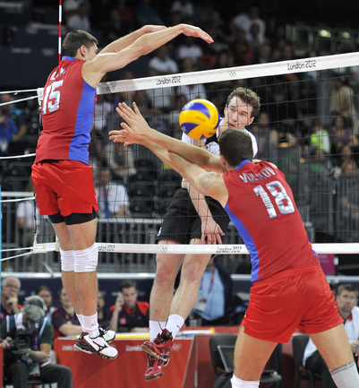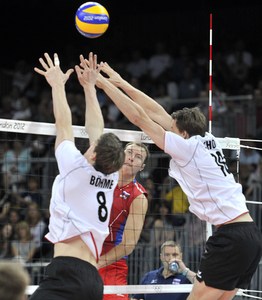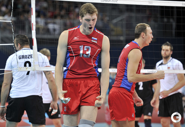Волейбол. Лондон. Олимпийские игры. Мужчины. Групповой турнир. Группа B. 1-й тур. Россия - Германия - 3:0 (31:29, 25:18, 25:17). Р: Мусэрский (8), Михайлов (21), Тетюхин (7), Волков (13), Бутько (2), Хтей (11), Обмочаев (л), Ильиных (1), Соколов (л). Г: Попп (6), Тишер (3), Калиберда (6), Бом (8), Гроцер (10), Шопс (10), Штеурволд (л), Шварц (1), Гюнтор (3), Кампа (2). В следующей игре сборная России сыграет с национальной командой Бразлии. Эта игра состоится в ближайший вторник. Фото - Алексей ИВАНОВ, "СЭ"