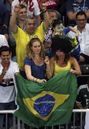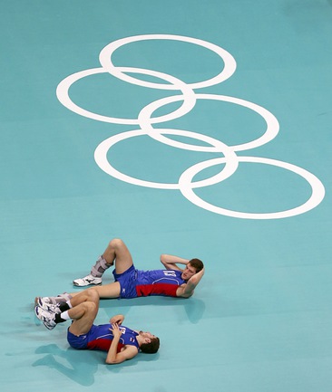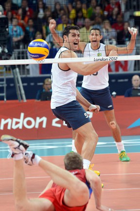 Волейбол. Лондон. Олимпийские игры. Мужчины. Групповой турнир. 2-й тур. Группа В. Бразилия - РОССИЯ - 3:0 (25:21, 25:23, 25:21). Турнирное положение: США, Бразилия - 6. РОССИЯ , Сербия - 3. Тунис, Германия - 0. Фото AFP и REUTERS