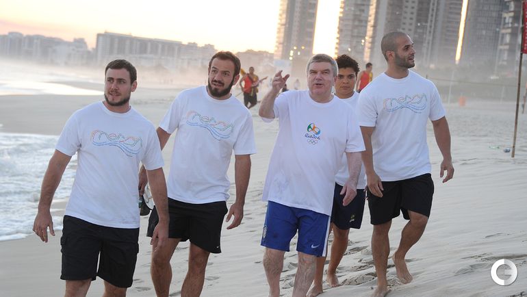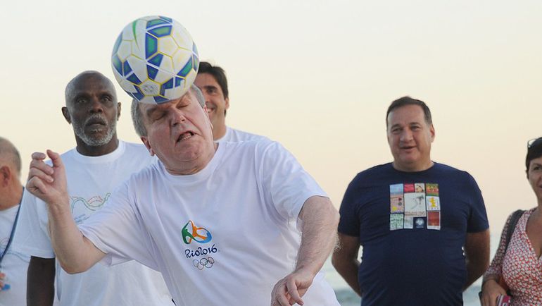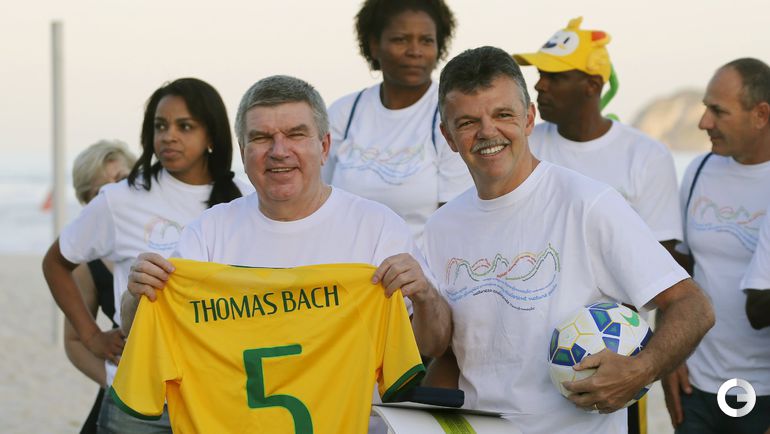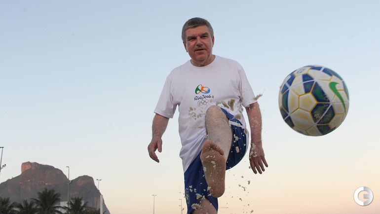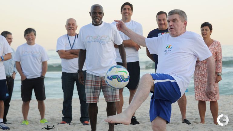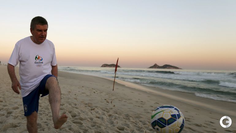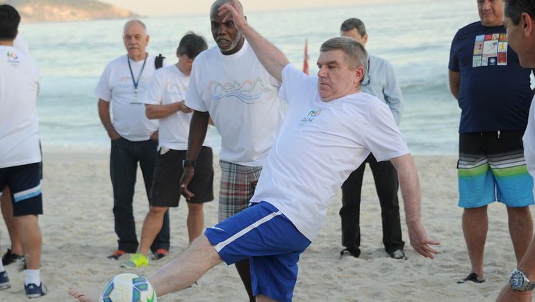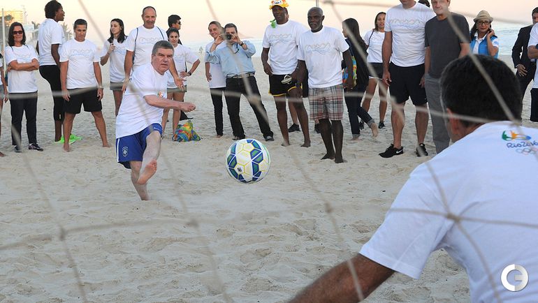Президент МОК Томас Бах играет в футбол на пляже Барра-да-Тижука в Рио-де-Жанейро. Фото AFP и REUTERS