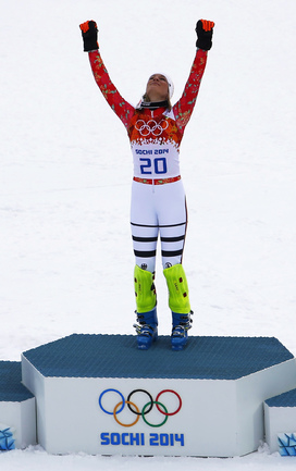 Немка Мария Хефль-Риш заняла первое место в суперкомбинации на Олимпиаде в Сочи Фото AFP, REUTERS