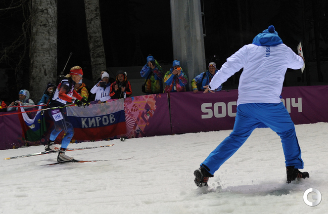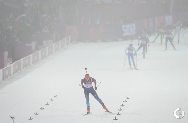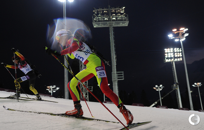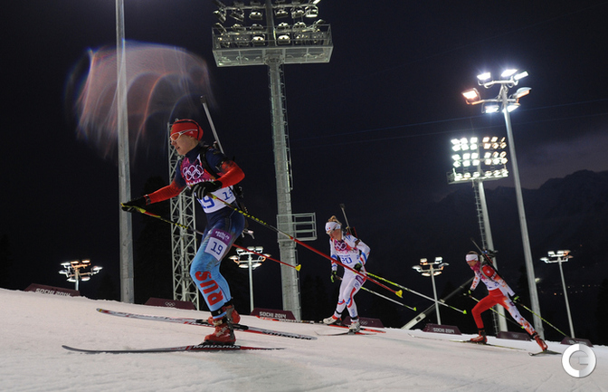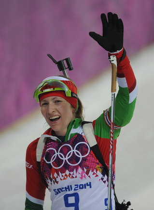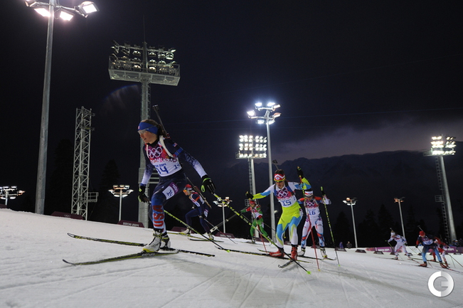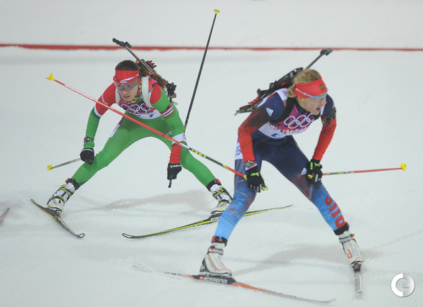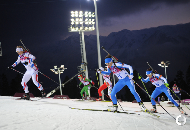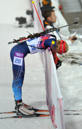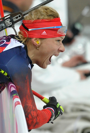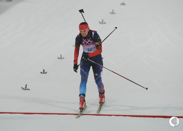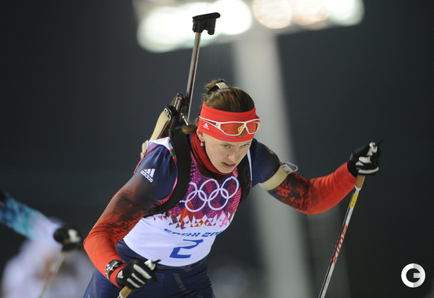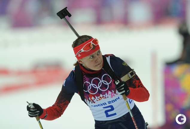 Биатлон. Сочи. XXII Олимпийские зимние игры. Женщины. Гонка преследования 10 км. 1. Домрачева (Белоруссия) – 29.30,7 (1 штрафной круг). 2. Т. Бергер (Норвегия) – отставание 37,6 (1). 3. Грегорин (Словения) – 41,1 (1)... 7. ВИЛУХИНА (Россия) – 1.02,2 (1). Фото - Федор УСПЕНСКИЙ, "СЭ"