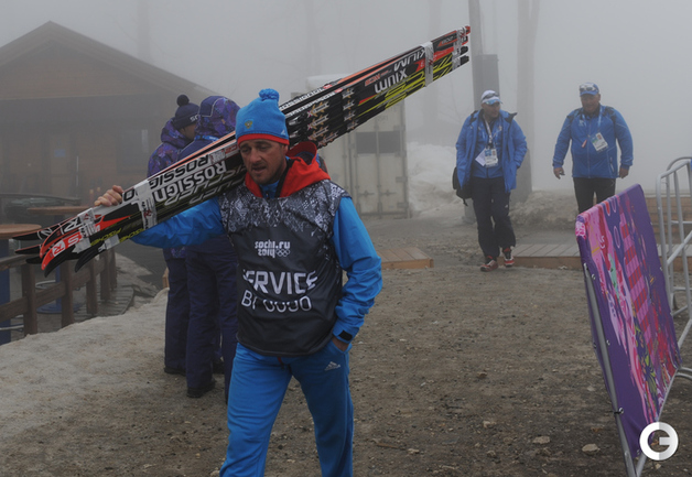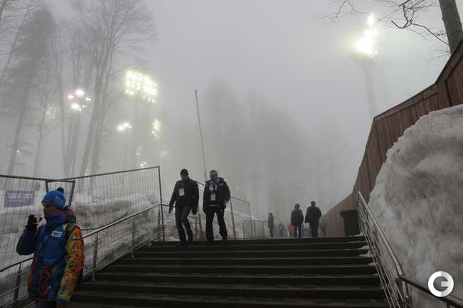 Начало мужского масс-старта намечено на 15.30, сообщает официальный сайт Олимпийских игр. Гонка должна была состояться еще вчера, но из-за сильного тумана ее перенесли на сегодня в 10.00. Утром в Красной Поляне вновь стоял туман, не давший провести гонку в положенное время. Фото - Федор Успенский, "СЭ"