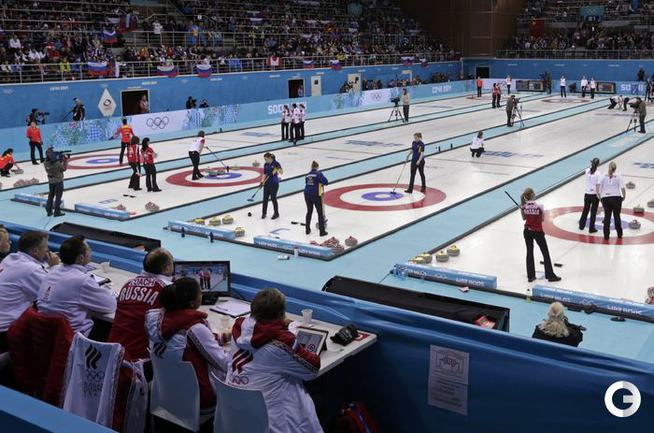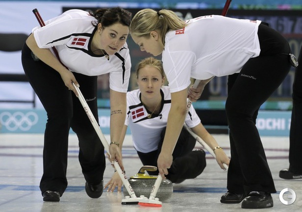 Керлинг. Сочи. XXII Олимпийские зимние игры. Круговой турнир. Женщины. Россия – Дания – 7:4 (0:0, 0:1, 1:0, 2:0, 1:0, 0:1, 0:1, 0:1, 2:0, 1:0). Швеция – Великобритания – 6:4. Швейцария – США – 7:4. Китай – Канада – 2:9. Фото AFP и REUTERS