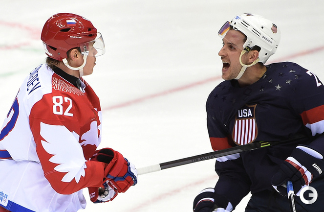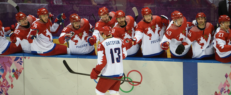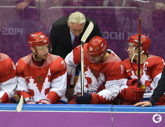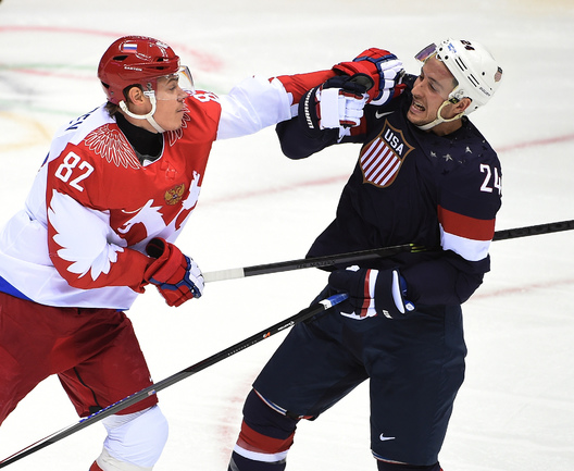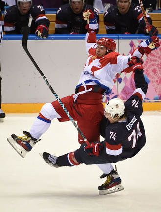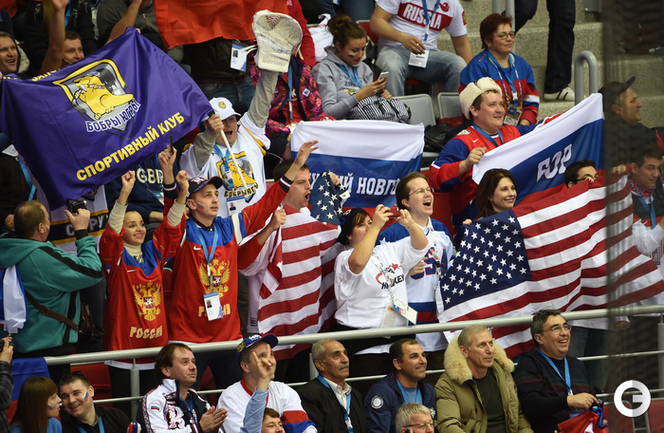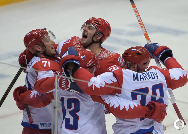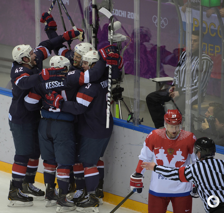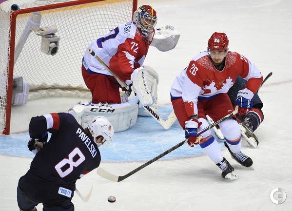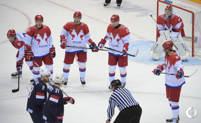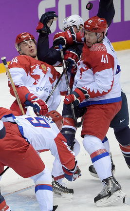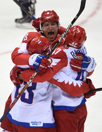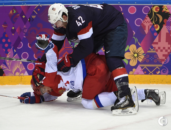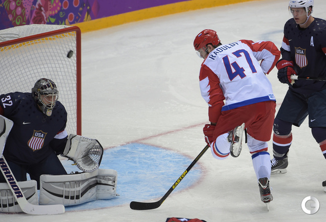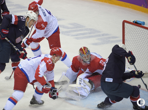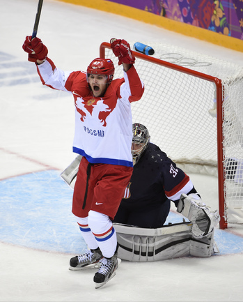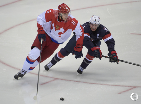15.02.2014. Сочи. Россия в матче 2-го тура группового турнира Олимпиады-2014 по буллитам проиграла США. Фото Александр ФЕДОРОВ "СЭ"
