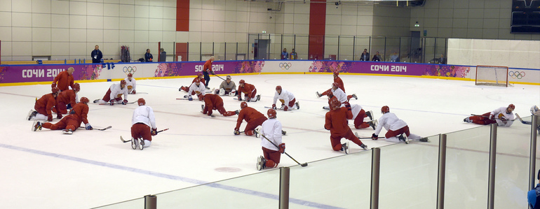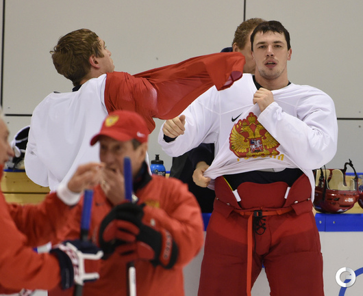 Олимпиада в Сочи. ХХII Зимние олимпийские игры. Ледовый дворец "Большой". Тренировка сборной России по хоккею. Фото - Александр Федоров, "СЭ"