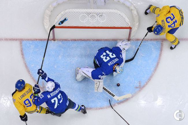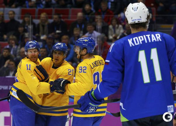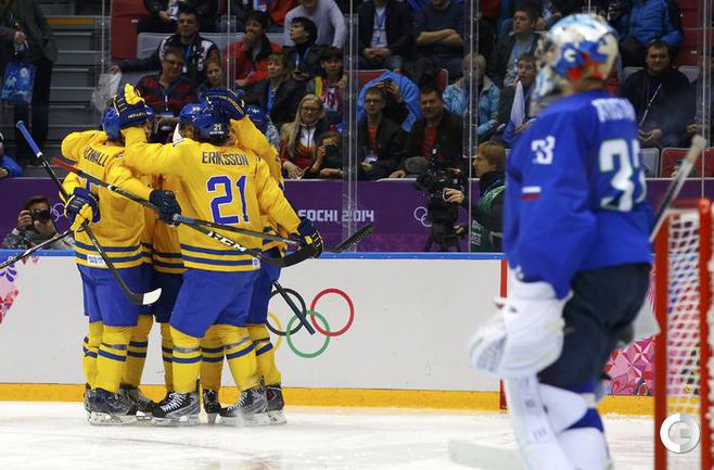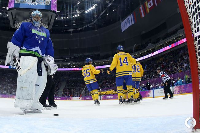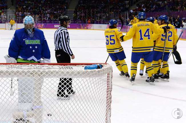 Мужская сборная Швеции в матче 1/4 финала Олимпийских игр в Сочи разгромила сборную Словении – 5:0. Дублем отметился нападающий Карл Хагелин. Фото AFP, REUTERS