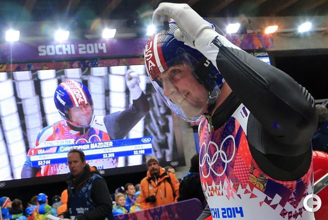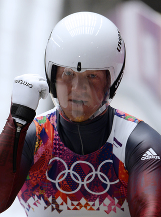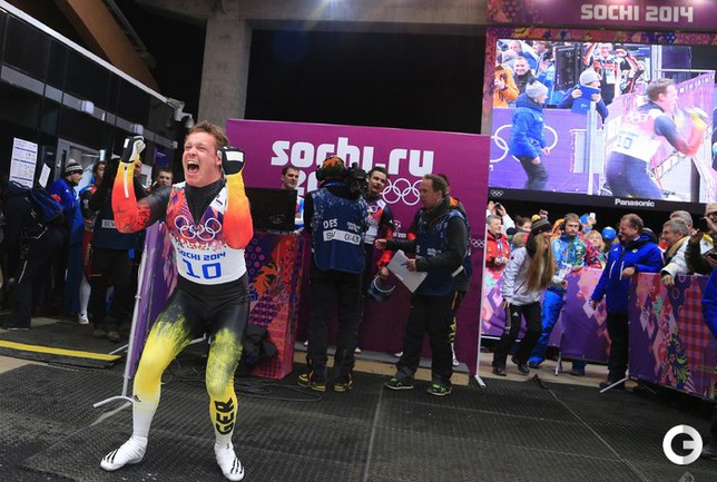 Сочи. XXII Олимпийские зимние игры. Сани. Одиночка. Итог по сумме 4 заездов. 1. Лох (Германия) - 3.27,526 (52,185 + 51,964 + 51,613 + 51,764). 2. ДЕМЧЕНКО (Россия) - 3.28,002 (52,170 + 52,273 + 51,707 + 51,852). 3. Цоггелер (Италия) - 3.28,797 (52,506 + 52,387 + 51,910 + 51,994). Это вторая медаль Игр для Демченко - в Турине-2006 он также стал вторым. Бронзу завоевал двукратный олимпийский чемпион (2002, 2006) итальянец Армин Цоггелер. Благодаря этому Россия догнала Канаду в общем медальном зачете Сочи-2014 (1 золото, 2 серебра, 1 бронза - 4-е место). Фото AFP