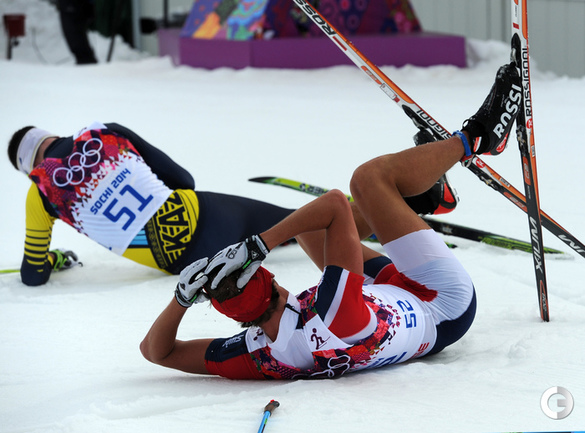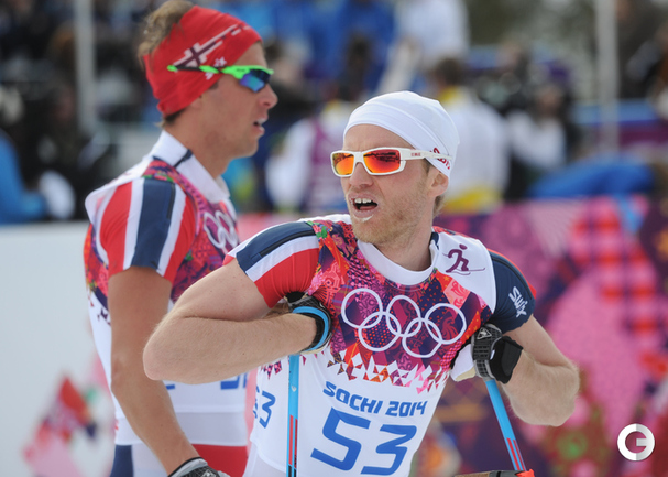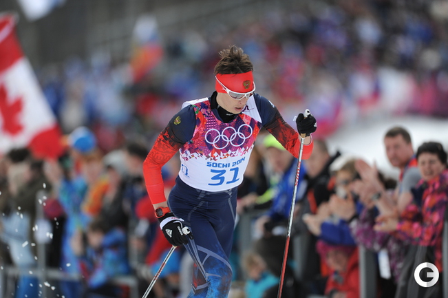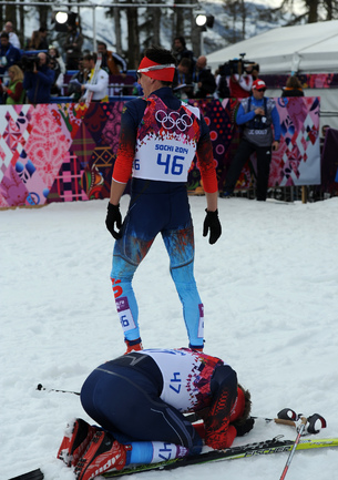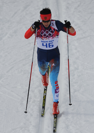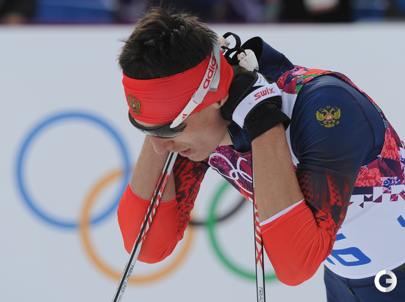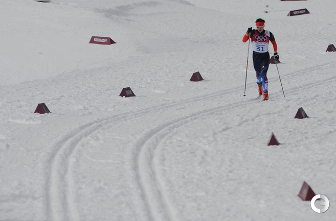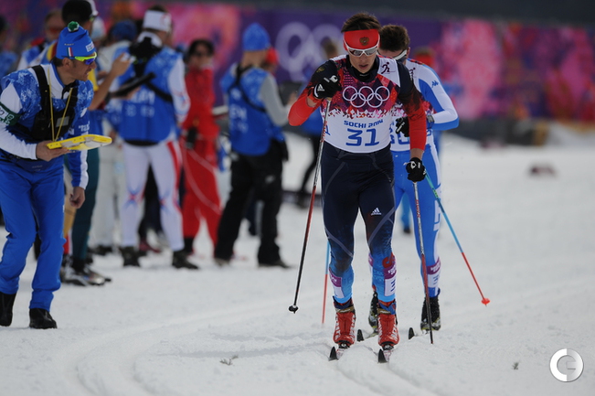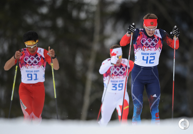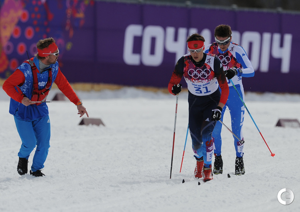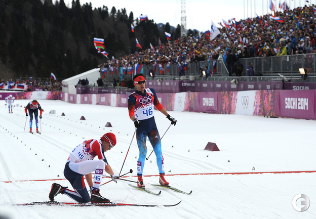 Лыжи. Сочи. XXII Олимпийские зимние игры. Мужчины. Индивидуальная гонка, 15 км (К). 1. Колонья (Швейцария) - 38.29,7. 2. Ольссон (Швеция) - отставание 28,5. 3. Рикардссон (Швеция) - 28,8. 4. Нисканен (Финляндия) - 39,0. 5. Бауэр (Чехия) - 58,9. 6. Йесперсен (Норвегия) - 1.00,9. 7. БЕССМЕРТНЫХ (Россия) - 1.08,0. Фото - Федор УСПЕНСКИЙ, "СЭ"