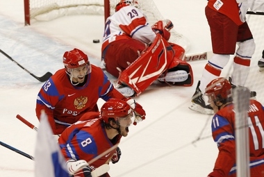 Тренерский штаб россиян к поединку с чехами с Ягром во главе пошел на знаковую перестановку. Недовольство действиями двух ударных троек требовало перемен. Корректирующим воздействием Малкин и Дацюк поменяли крайних форвардов. Или наоборот: связки Овечкин - Семин и Ковальчук - Афиногенов поменяли центральных нападающих. Не зря Дацюк шутил, что он за взрывными Александрами не поспевает. Пусть это звучало довольно критично, но в диспетчеры к Овечкину просился Малкин. Предыдущий удачный опыт совместной игры (на чемпионатах мира-2005 и 2006 и в четвертьфинале туринской Олимпиады с Канадой) обещал дать интересные результаты в настоящем. Дацюку же была уготована новая роль с задачей рестарта тройки Ковальчука и Афиногенова, которые в Ванкувере не слишком убедительны.